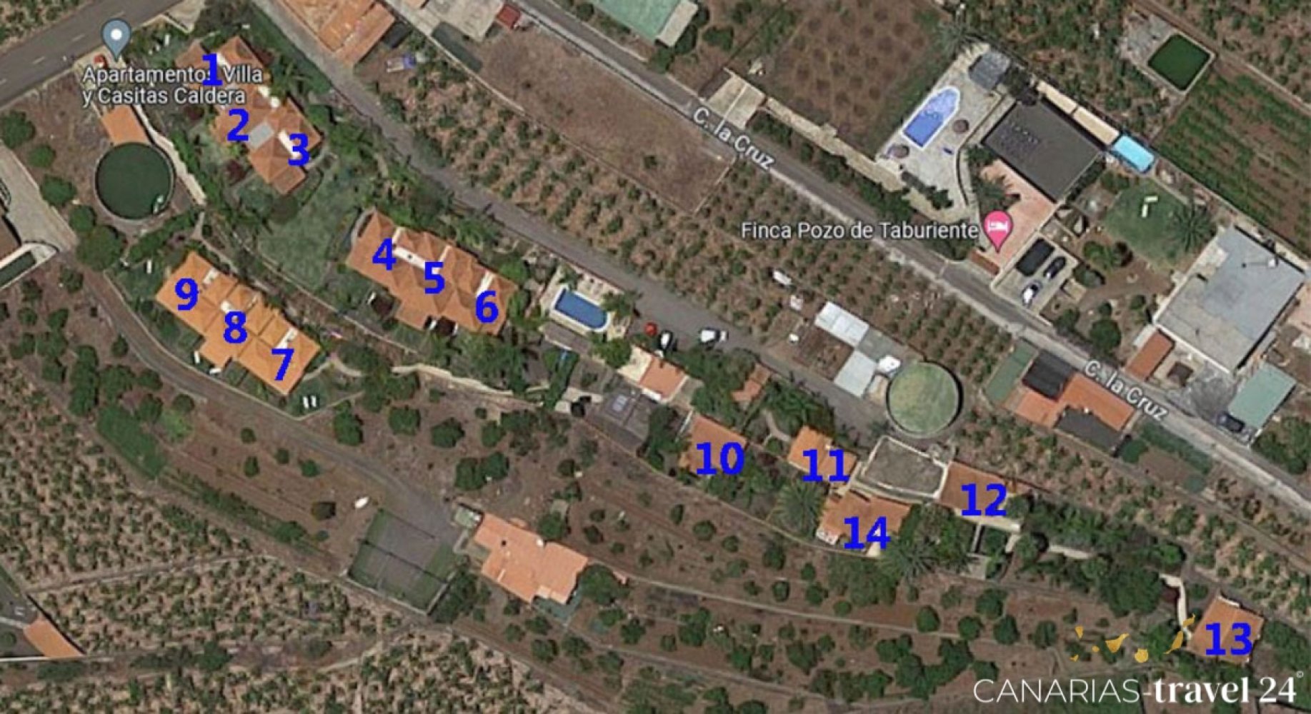 Die Lage dieser Ferienanlage ist ideal. In nur ca. 5 Minuten mit dem Auto erreichen Sie das Ortszentrum von Los Llanos, wo Sie zahlreiche Geschäfte, Supermärkte, Bars, Restaurants, Banken und Apotheken finden. Der beliebte Badeort Tazacorte ist etwa 15 Autominuten entfernt. Naturfreunde werden die Nähe zur Caldera de Taburiente (ca. 20 Autominuten) und zum Refugio El Pilar (ca. 30 Autominuten) schätzen. Zudem gibt es in der Umgebung zahlreiche Ausgangspunkte für Wanderungen.