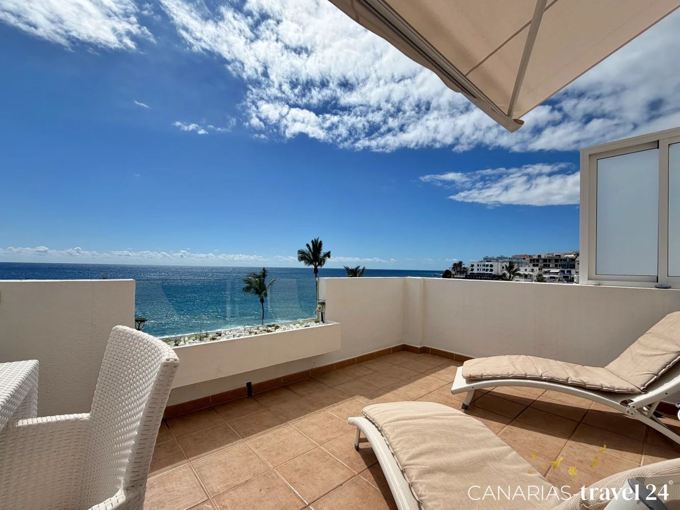 Ein besonderes Highlight ist die möblierte Terrasse: Genießen Sie hier einen atemberaubenden, freien Blick auf den Atlantik und den Strand von Puerto Naos. Lassen Sie den Tag bei einem Glas Wein ausklingen, während die Sonne spektakulär im Meer versinkt – ein Erlebnis, das Sie so schnell nicht vergessen werden.