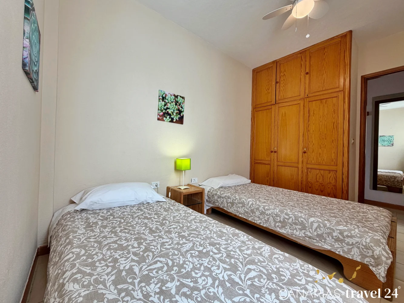 Schlafzimmer 2: zwei Einzelbetten (je 90 cm x 190 cm), Nachttisch, Schrank