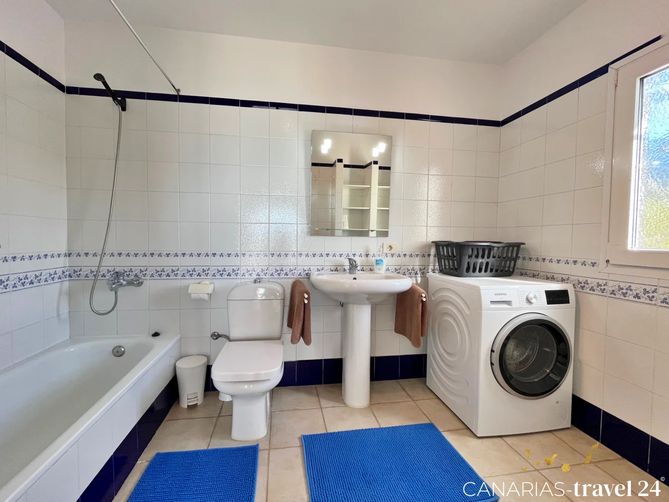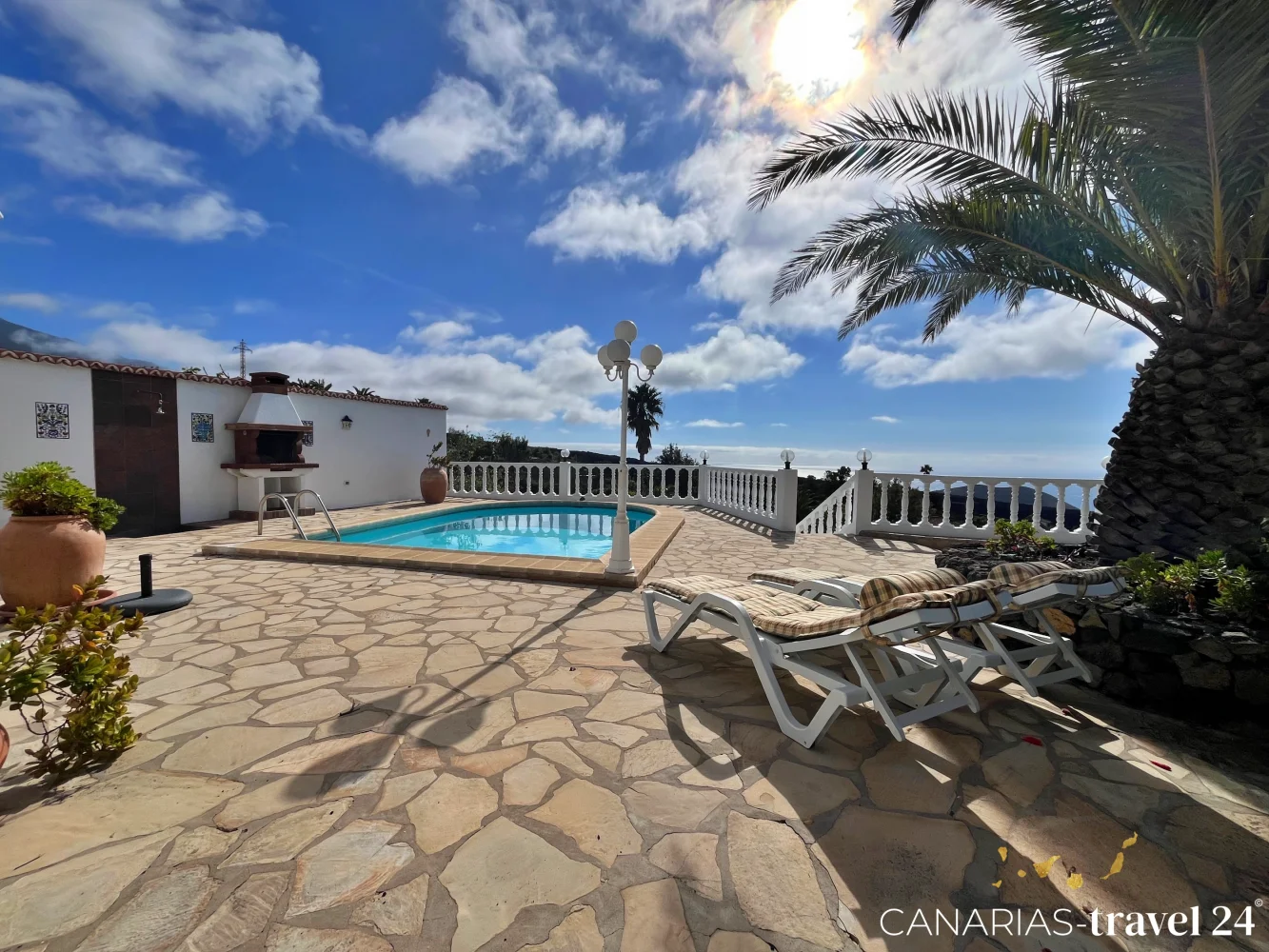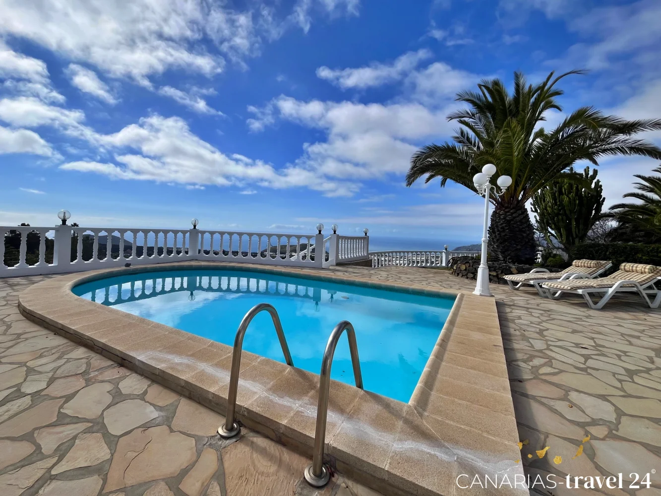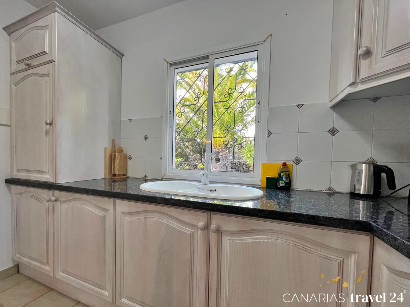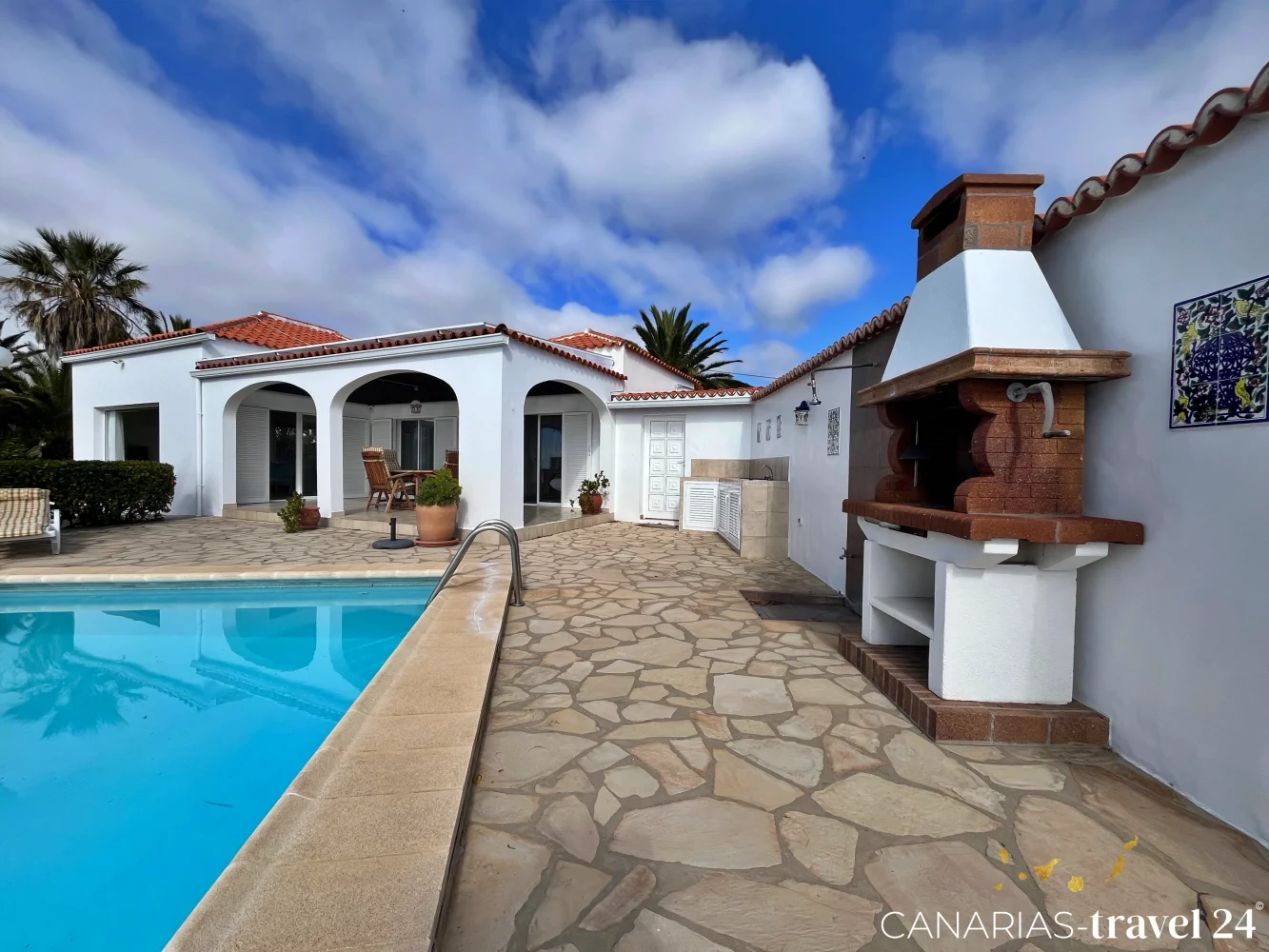 Davor erwartet Sie die Sonnenterrasse mit privatem Pool, bequemen Sonnenliegen und gemütlichen Gartenmöbeln – perfekt für entspannte Stunden unter der kanarischen Sonne. Ein Grill und eine Außenspüle sorgen für zusätzlichen Komfort. Ein privater Parkplatz am Haus steht ebenfalls zur Verfügung.