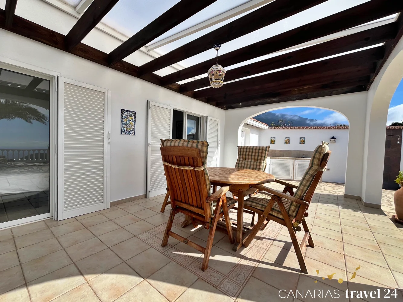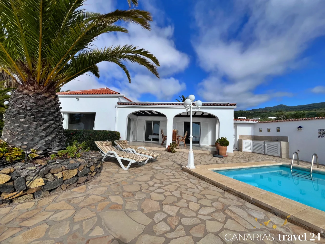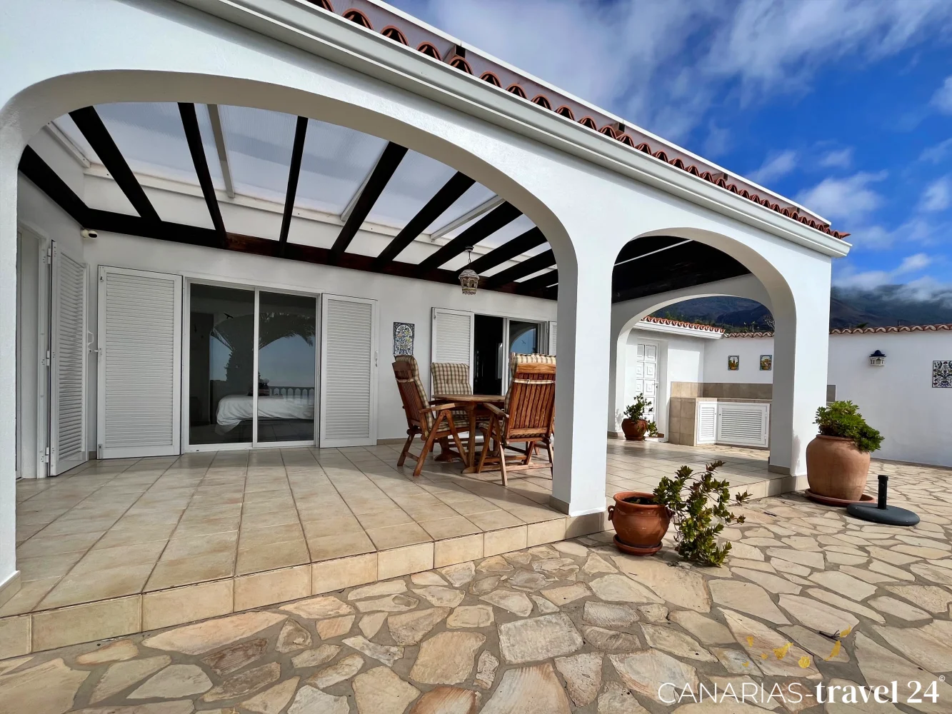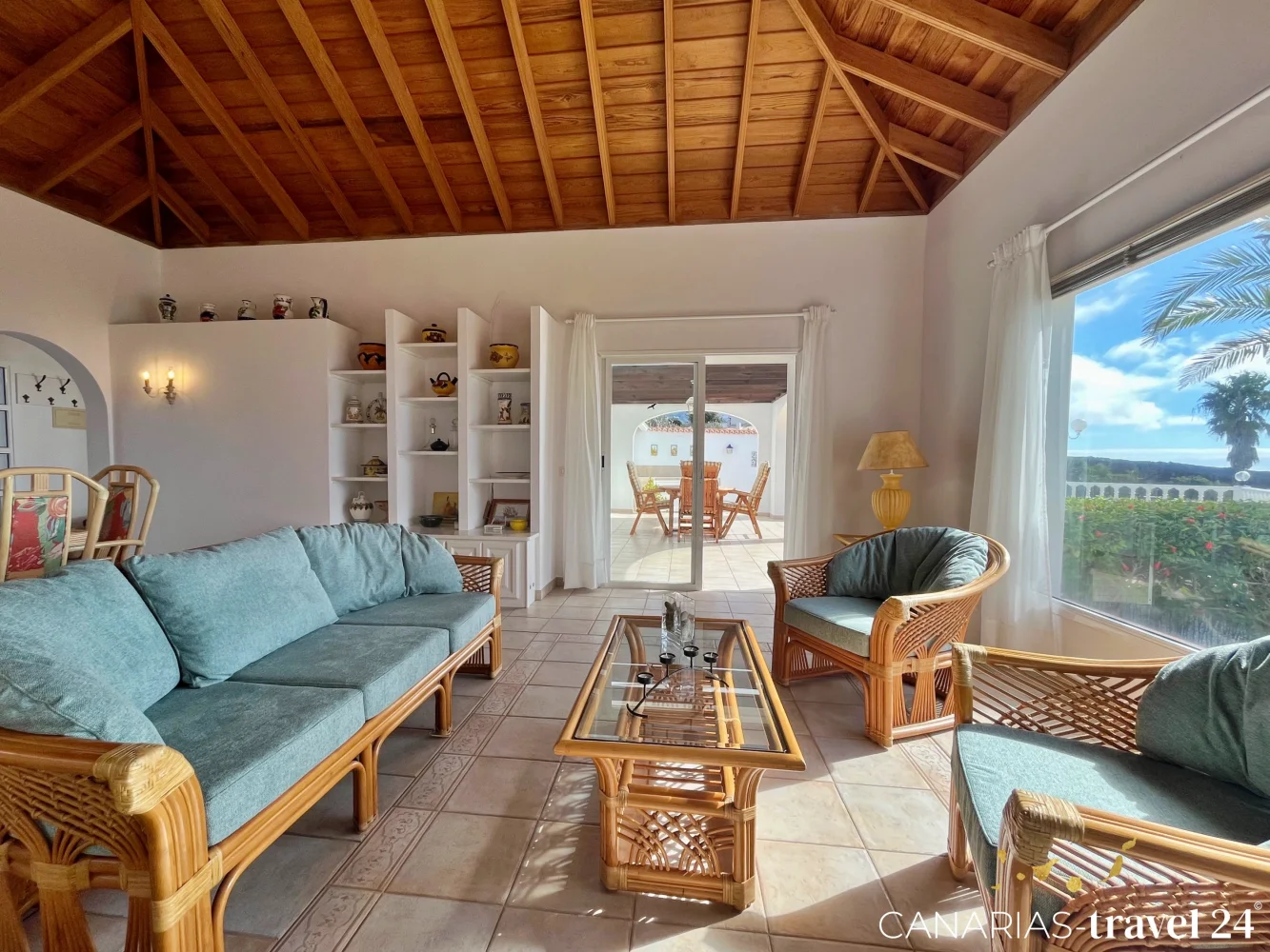 Davor erwartet Sie die Sonnenterrasse mit privatem Pool, bequemen Sonnenliegen und gemütlichen Gartenmöbeln – perfekt für entspannte Stunden unter der kanarischen Sonne. Ein Grill und eine Außenspüle sorgen für zusätzlichen Komfort. Ein privater Parkplatz am Haus steht ebenfalls zur Verfügung.