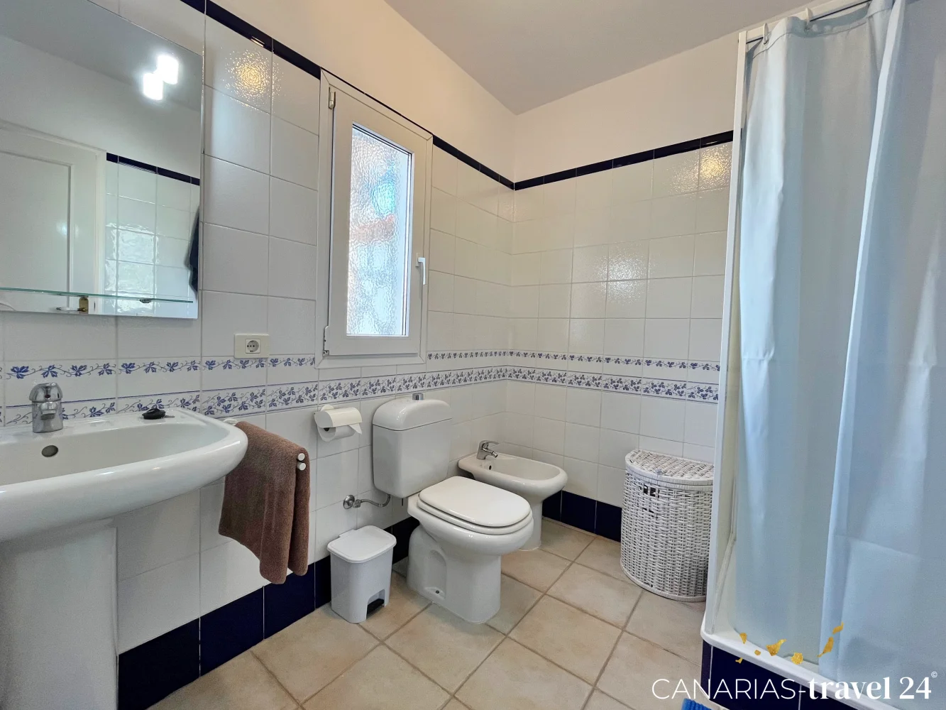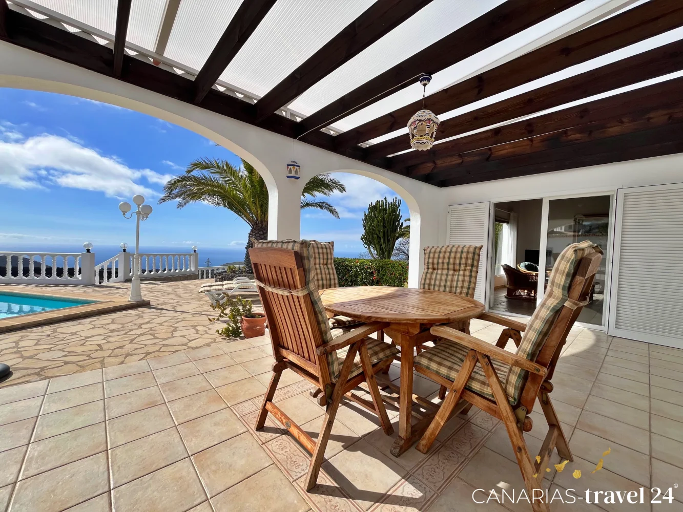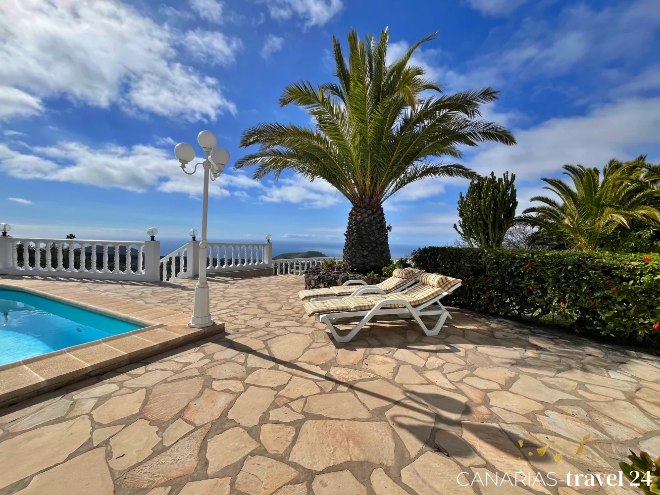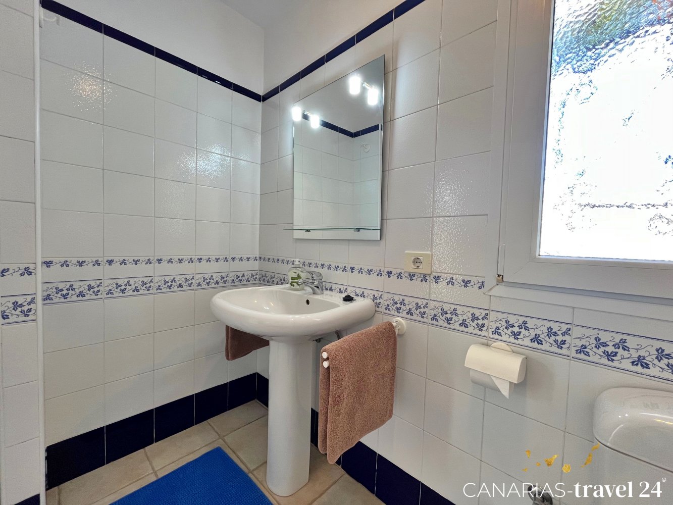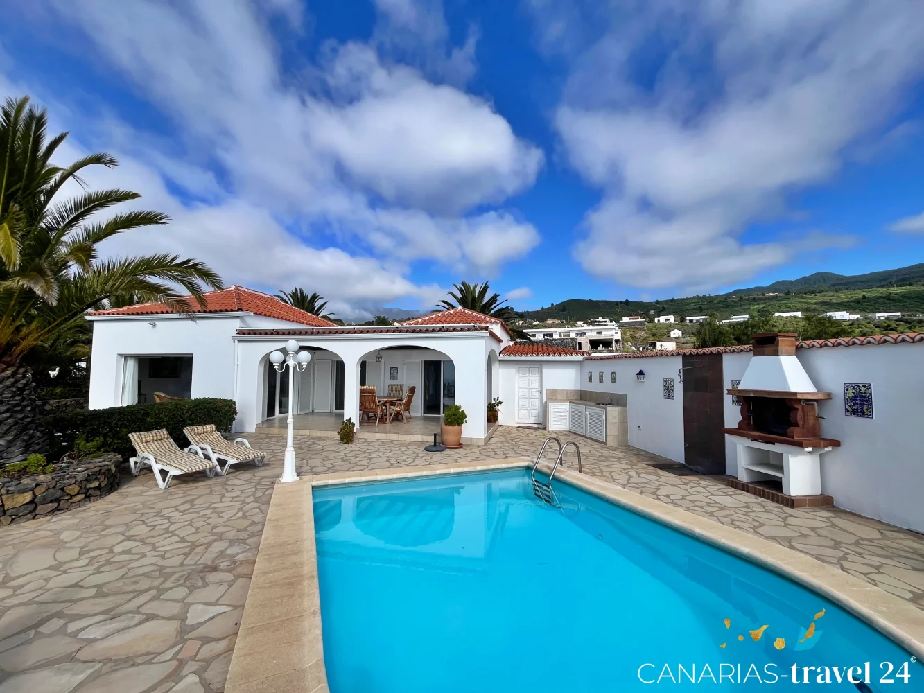 Davor erwartet Sie die Sonnenterrasse mit privatem Pool, bequemen Sonnenliegen und gemütlichen Gartenmöbeln – perfekt für entspannte Stunden unter der kanarischen Sonne. Ein Grill und eine Außenspüle sorgen für zusätzlichen Komfort. Ein privater Parkplatz am Haus steht ebenfalls zur Verfügung.