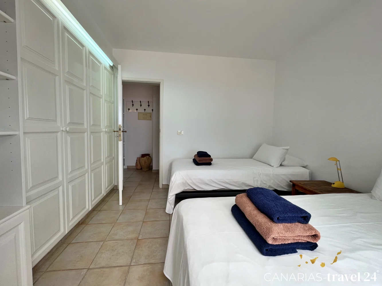 Schlafzimmer 2: Zwei Einzelbetten je 90 cm x 200 cm, Nachttisch mit Lampe, Schrank