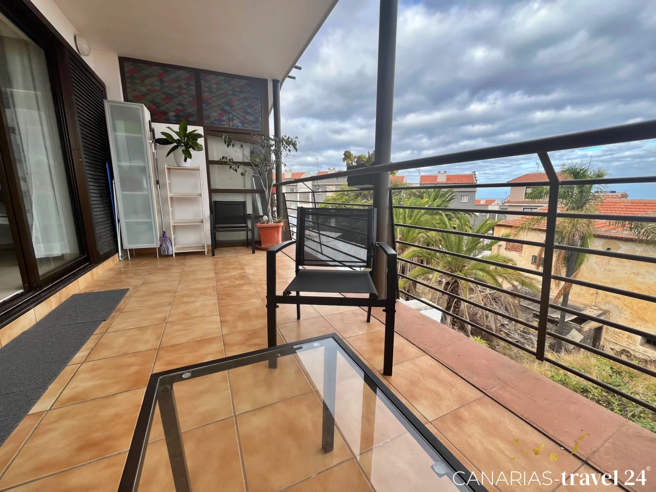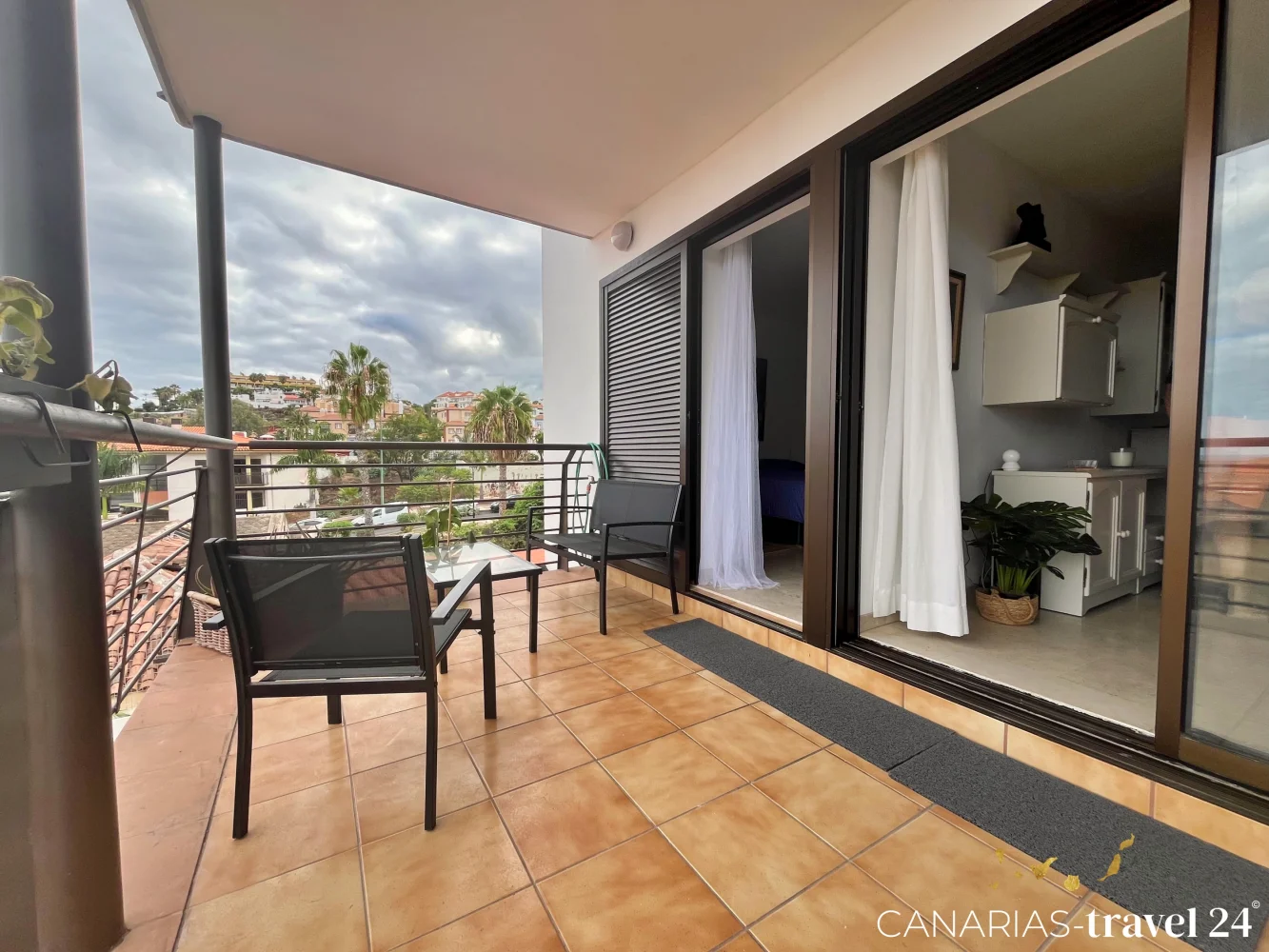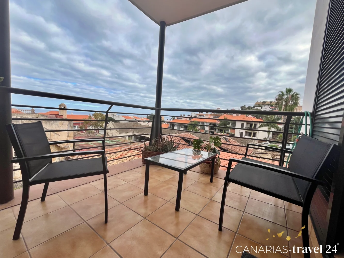 Außenbereich: Terrasse mit einem Tisch, 2 Stühlen