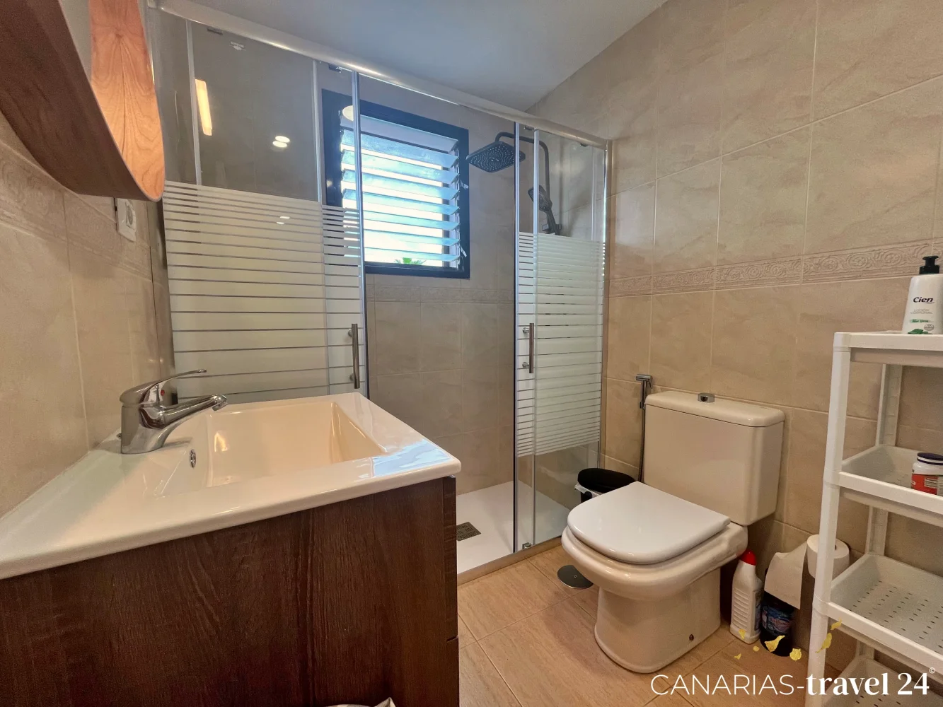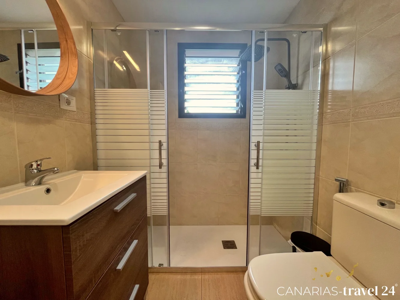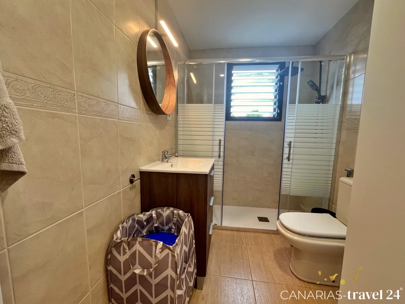 Badezimmer: Dusche, Handwaschbecken, WC, Föhn, Waschmaschine