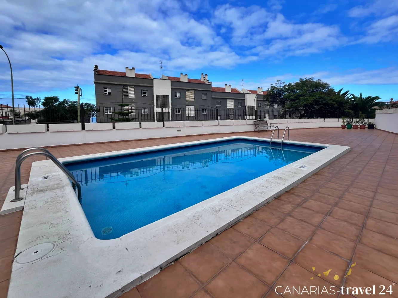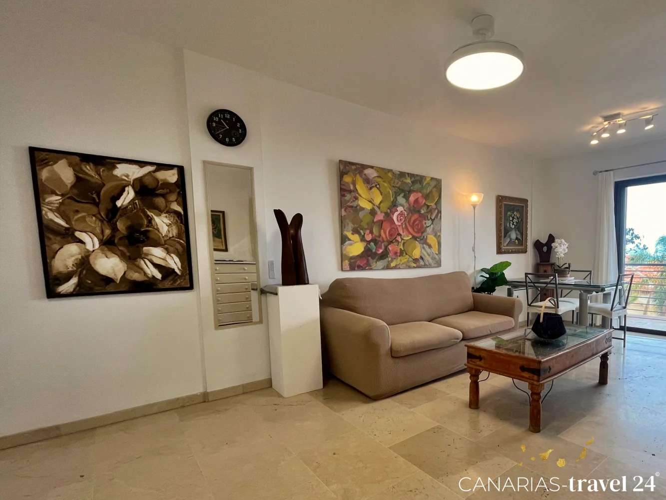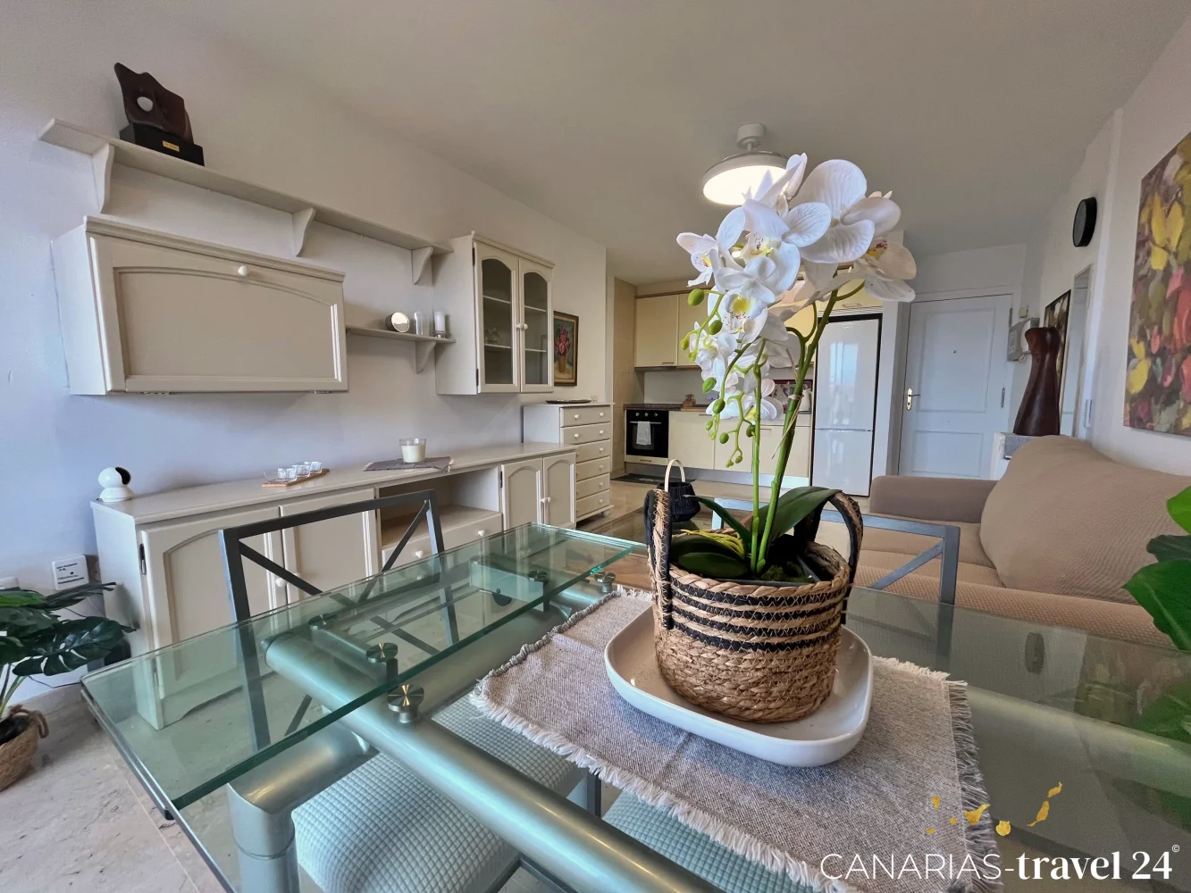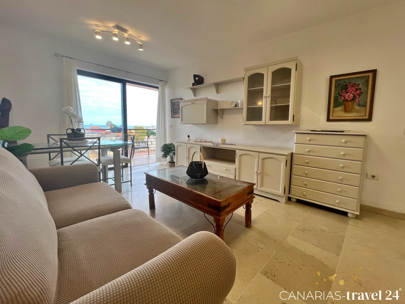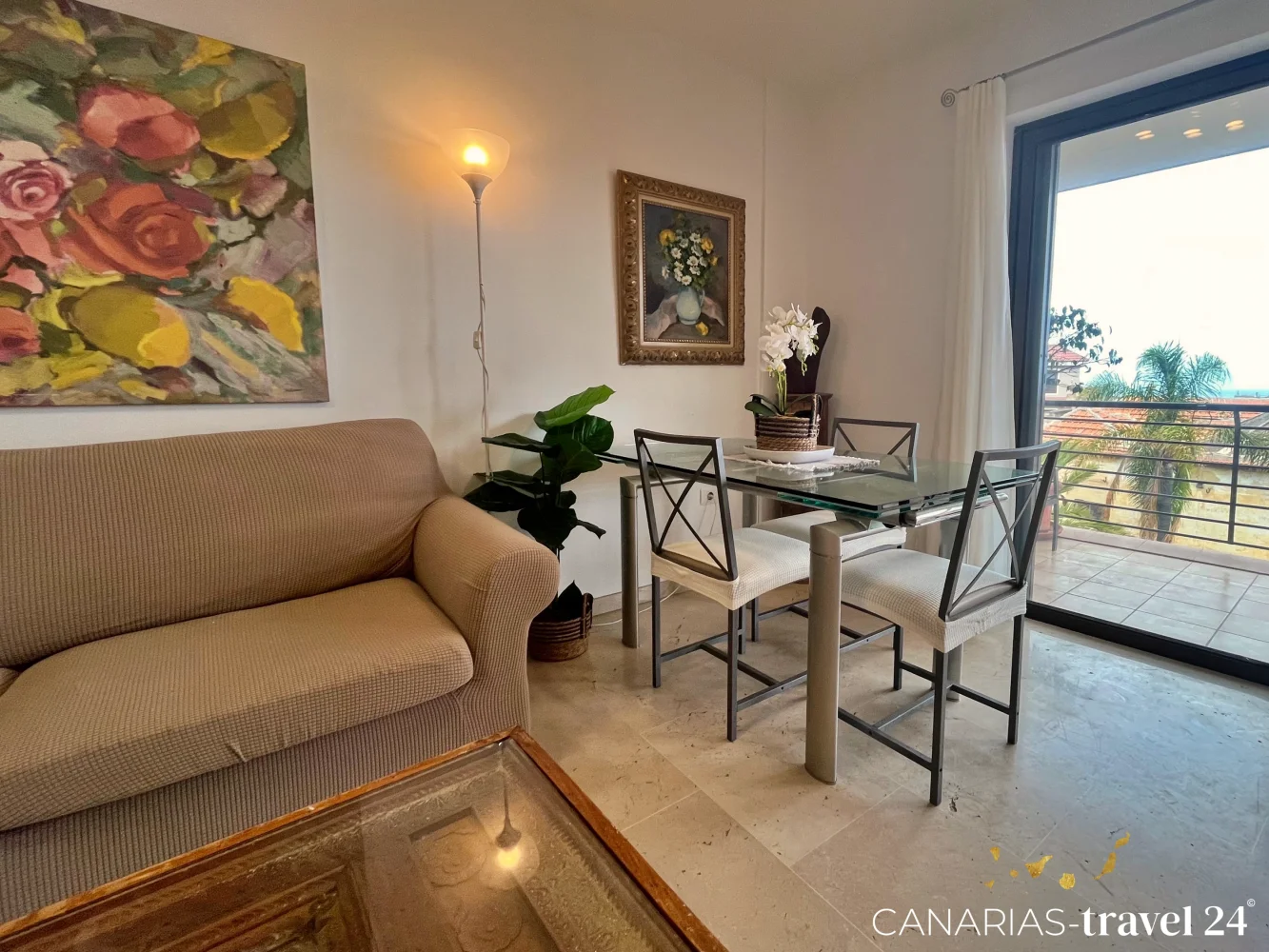 Wohnzimmer: Smart TV, spanisches Fernsehen, Esstisch mit vier Stühlen