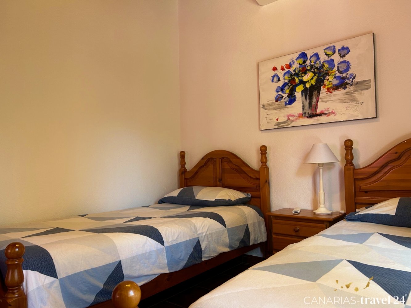 Schlafzimmer 1: Zwei Einzelbetten (je 90 cm x 190 cm), Schrank, Nachttisch mit Lampe, Klimaanlage (mit Kühl- und Heizfunktion)