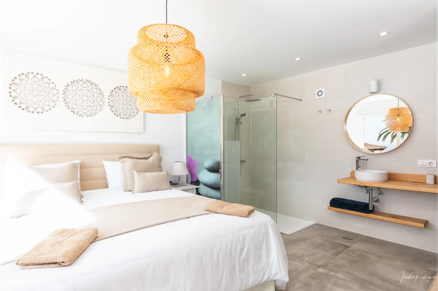 Welcome to the Tajuya Suite, your private holiday retreat on the sunny island of La Palma. This modern 60 sqm holiday home is located in the peaceful district of Tajuya near Los Llanos de Aridane and impresses with stylish design, an open living concept and light-flooded rooms – ideal for a relaxing island vacation.