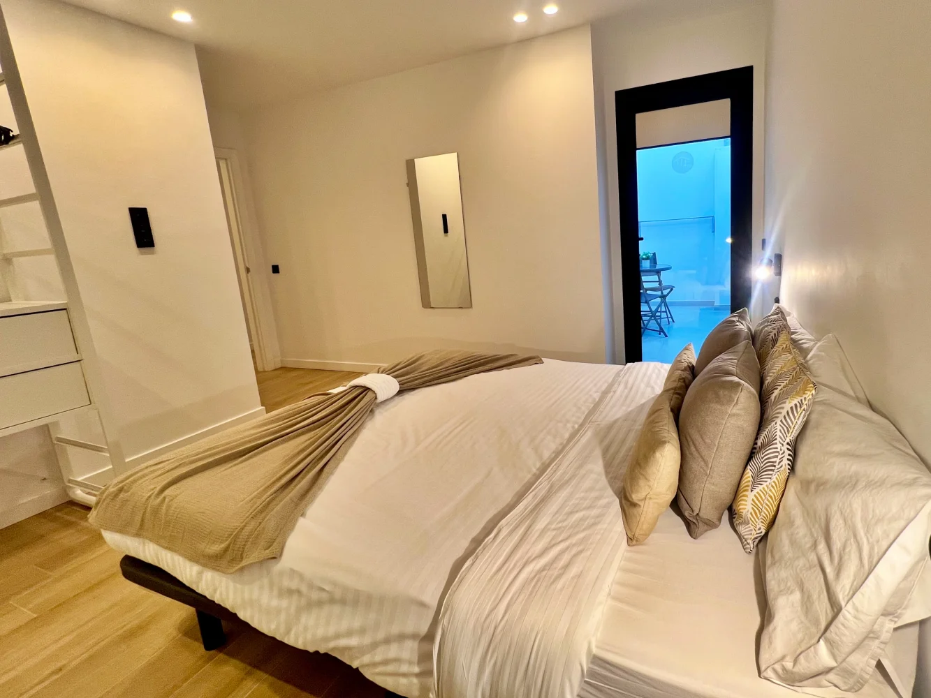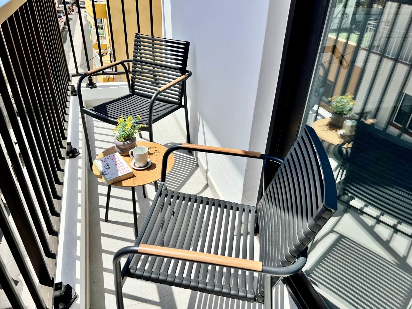 Outdoor area: Private inner terrace with table and chairs, furnished balcony with table and chairs