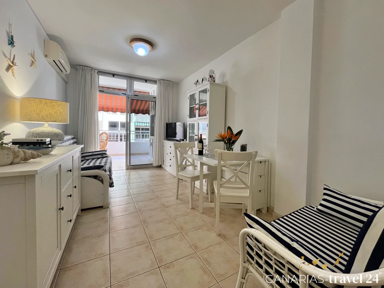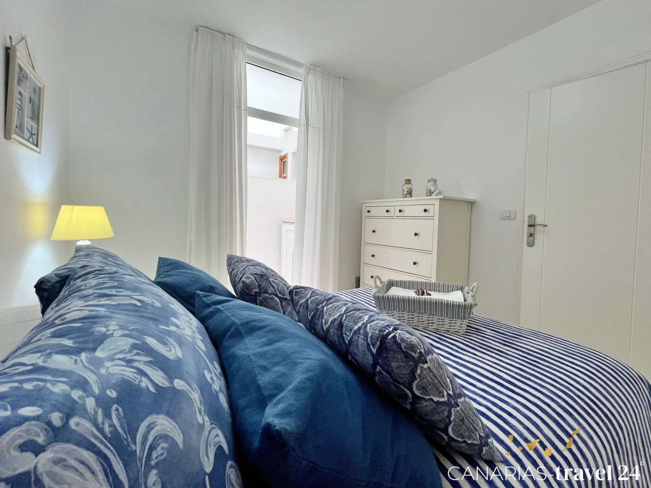 Experience unforgettable holiday moments in the modern holiday apartment Mi Playita, just a few steps from the fine sandy beach of Puerto Naos. On 75 sqm, a bright, modern living atmosphere awaits you with lovingly furnished rooms: a cozy living and dining area, a fully equipped kitchen, a comfortable bedroom, and a modern bathroom.