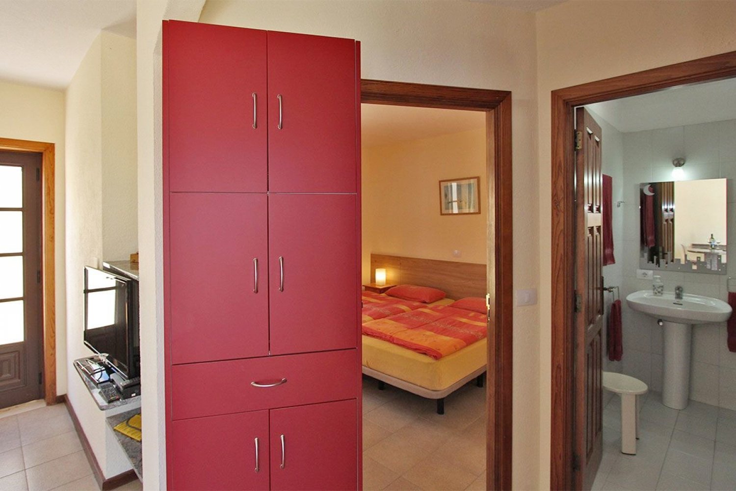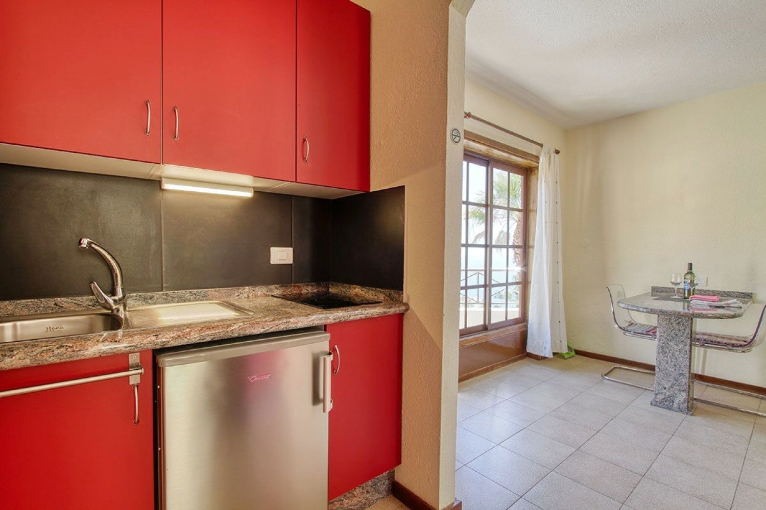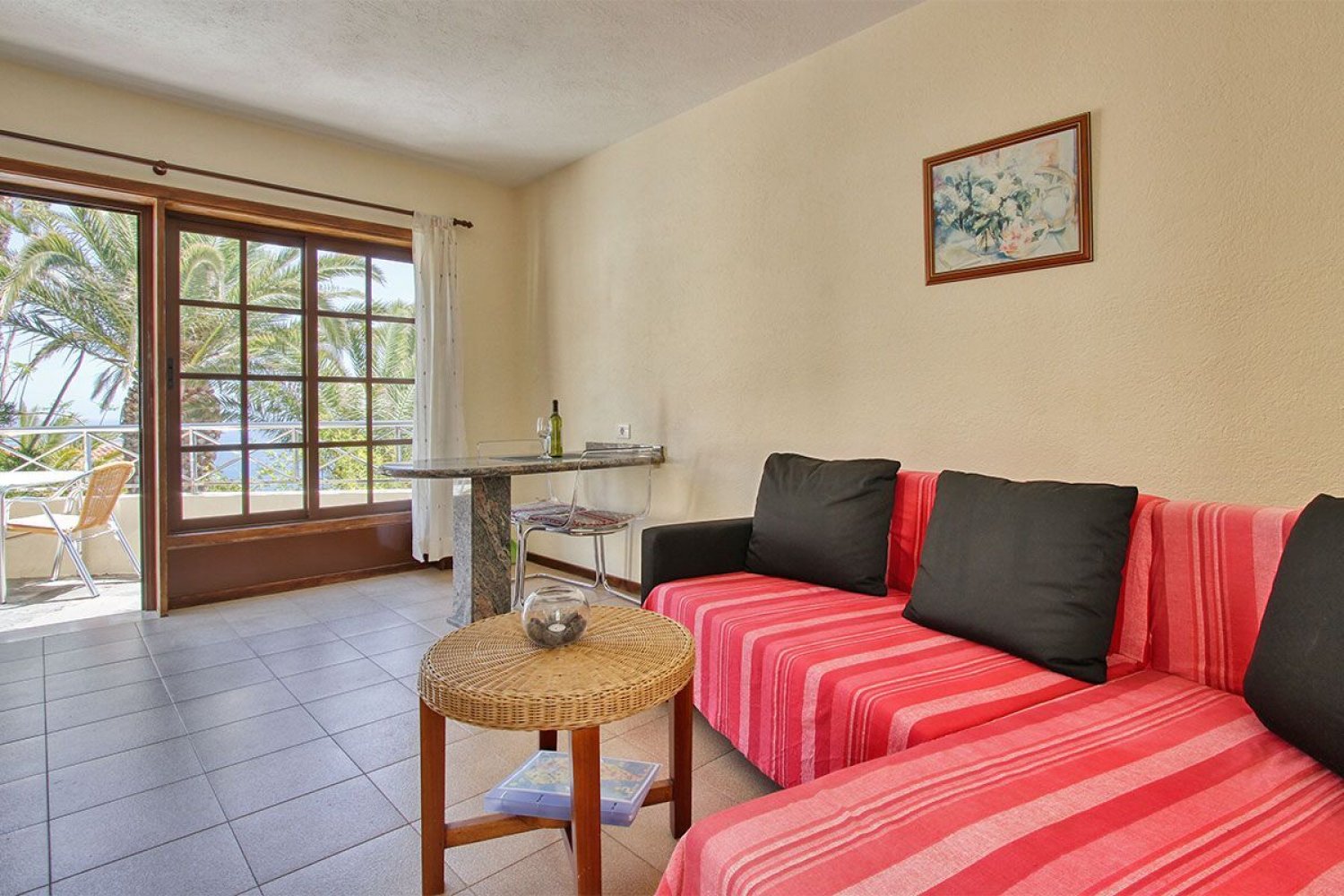 Living room: Satellite television, Spanish TV, dining table with two chairs, access to the terrace